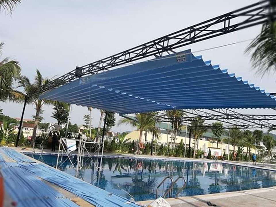 Thi công mái xếp che hồ bơi tại Cầu Giấy