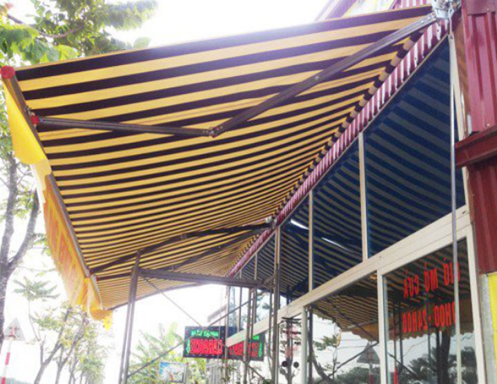 Mái hiên di động sử dụng tay quay hoặc lắp motor để thu mái hoặc thả ra khi cần che